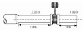 2.縮管的安裝: 對(duì)于大口徑小流量,縮管安裝,同時(shí)保證流量計(jì)的前直管段≥15D,后直管段≥5D |