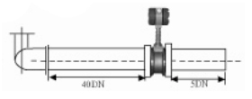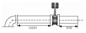 3.彎管的安裝: 如果流量計(jì)的前端有90°彎頭或T型接頭,要保證流量計(jì)的前直管段≥15D,后直管段≥5D |