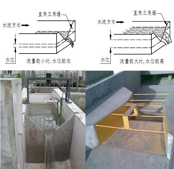 常用的量水堰槽有,直角三角堰、矩形堰和巴歇爾槽(如下圖)