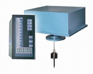 探測速度:0.15m/s 測 量 帶:不銹鋼鋼絲繩 重錘重量:1kg 電機停轉力矩:5N.m 功 耗:靜止時 0W 運行時 40W 環境溫度:-40℃~+60℃ 重 量:30kg 電源電壓:220VAC±10% 50Hz±1Hz 功 耗:靜止時 15W 運動時 55W 環境溫度:30℃~+60℃ 數字顯示:0.00~20.50(米) 電流輸出:4~20mA 精 度:±1% 定時時間:15~130分鐘(或按用戶要求定) 與傳感器大距離:0.5km 重 量:5kg 外形尺寸:寬88×高159×長503 開孔尺寸:寬(77+1)×高(153+1) ■ 三.產品工作原理 重錘料位計安裝在料倉頂部的料位計傳感器的探測過程由控制顯示儀表發出的信號控制。傳感器由可逆電機、蝸輪、蝸桿、絲杠、齒輪軸、繞線筒、靈敏杠桿等組成。當傳感器接到探測命令時:電機正轉,經蝸輪、蝸桿減速后帶動齒輪軸和繞線筒轉動,使鋼絲繩下放,帶動重錘由倉頂下降。當重錘降至料面時被料面托起而失重,鋼絲繩馳,靈敏杠桿動作使微動開關接觸,控制顯示器獲得該信號立即發出電機反轉命令,重錘上升返回,直到繞線筒碰上到頂開關,電機停轉,重錘回到倉頂原始位置,完成一次探測過程。在此過程中控制顯示儀表通過檢測繞線筒的轉數計算出重錘從倉底到料面間的距離,在面板進行數字顯示,并在后面板端子上輸出4~20mA電流。